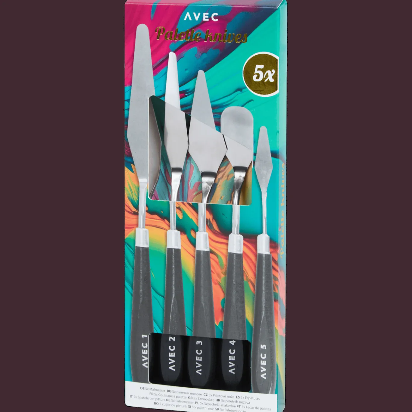 Met een paletmes kun je eenvoudig de verf op je schilderspalet mengen. Maar je kunt hem ook gebruiken om je kunstwerk van nieuwe structuren te voorzien. Met deze 5-delige set kun je alle kanten uit.
