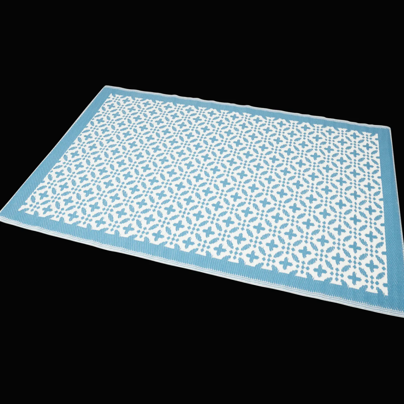 Modern vloerkleed dat je buiten kunt laten liggen. Leuk om de tuin of het balkon mee aan te kleden.