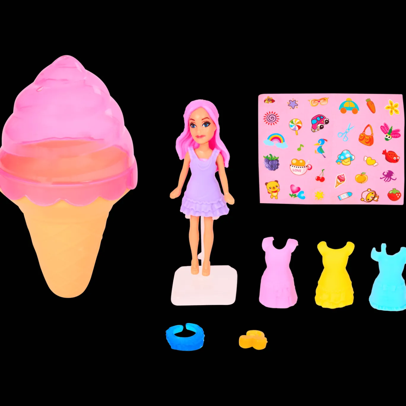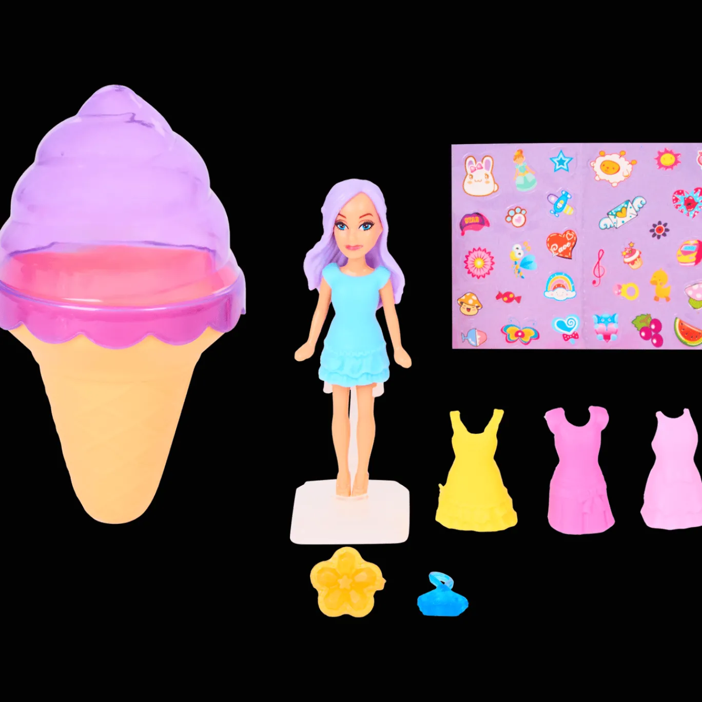 Ontdek een leuk verrassingspopje verstopt in een schattig ijsje! Deze leuke speelset zit boordevol kleurrijke accessoires, outfits en stickers waarmee je eindeloos kunt mixen en matchen.