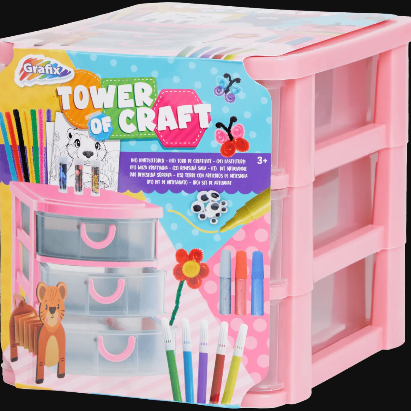 Deze te gekke knutseltoren zit bomvol knutselspulletjes voor urenlang knutselplezier. Versier kaarten met glitters, ga lekker kleuren of wees creatief met draad. De mogelijkheden zijn eindeloos!