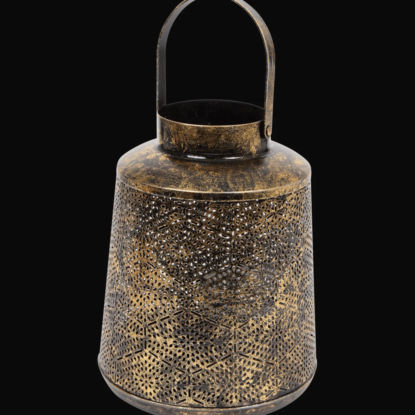 Metalen windlicht met een mooi patroon dat een vintage uitstraling geeft. Met het handvat verplaats je hem makkelijk.