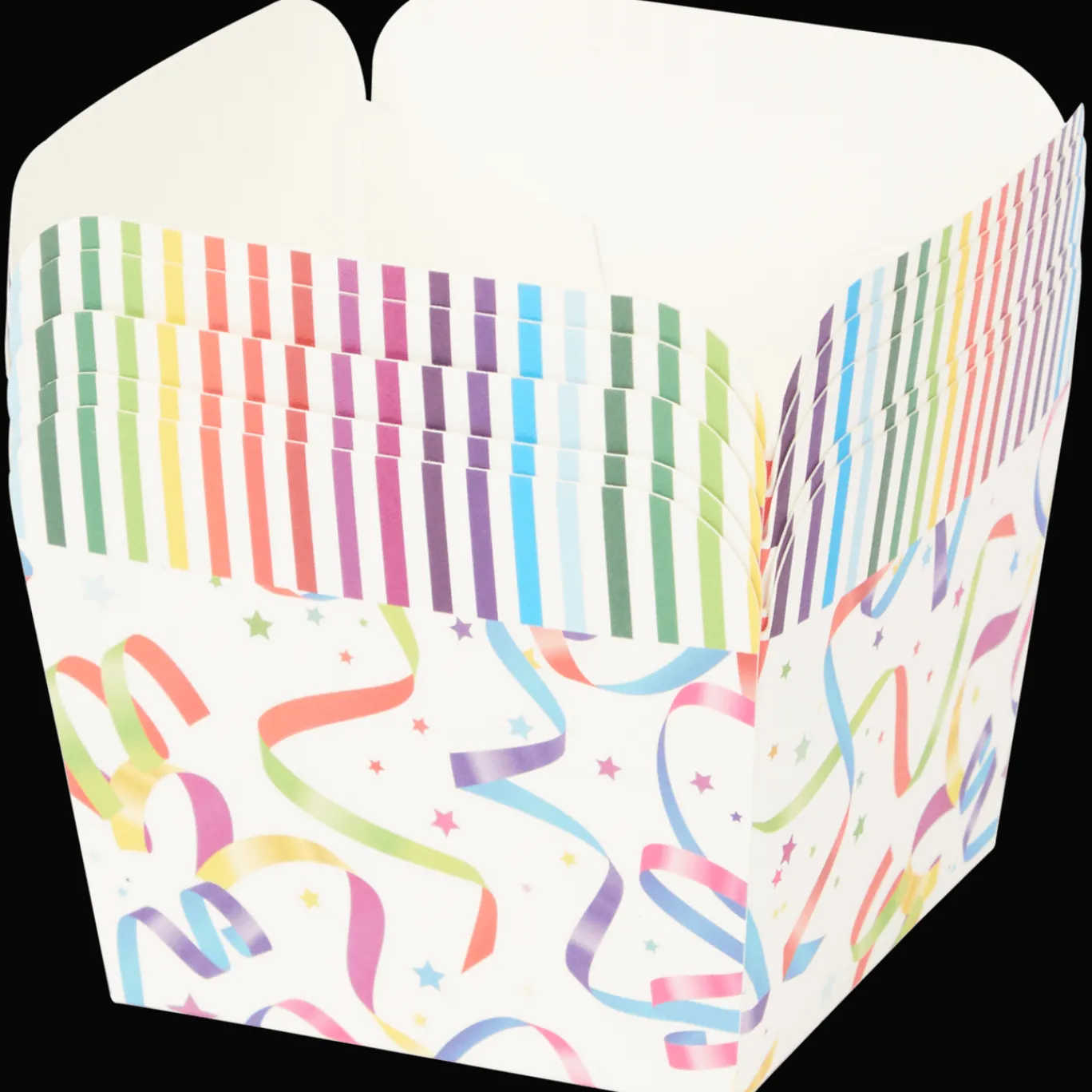 Serveer je snacks tijdens een feestje, verjaardag of filmavond in deze vrolijke kartonnen bakjes.