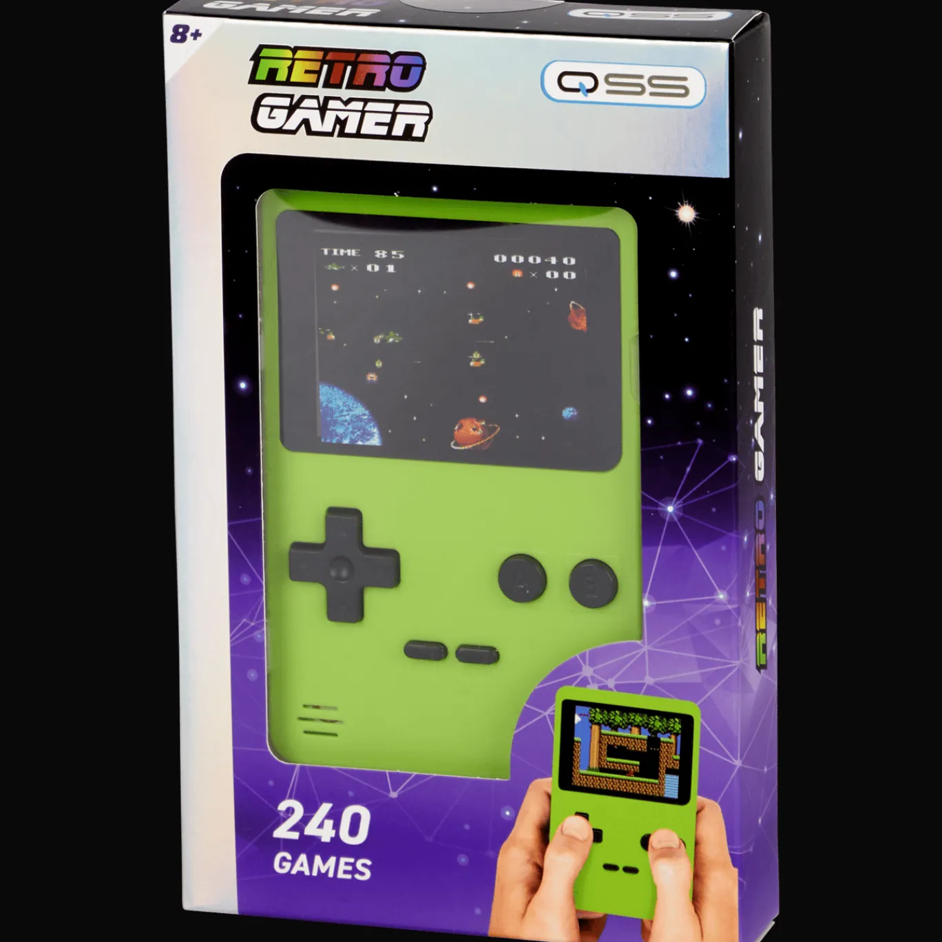 Waan je in de jaren ’90 met deze retro spelcomputer. Geen adembenemende visuals maar oldschool pixelbeeld. Er staan wel 240 spellen op om te ontdekken.