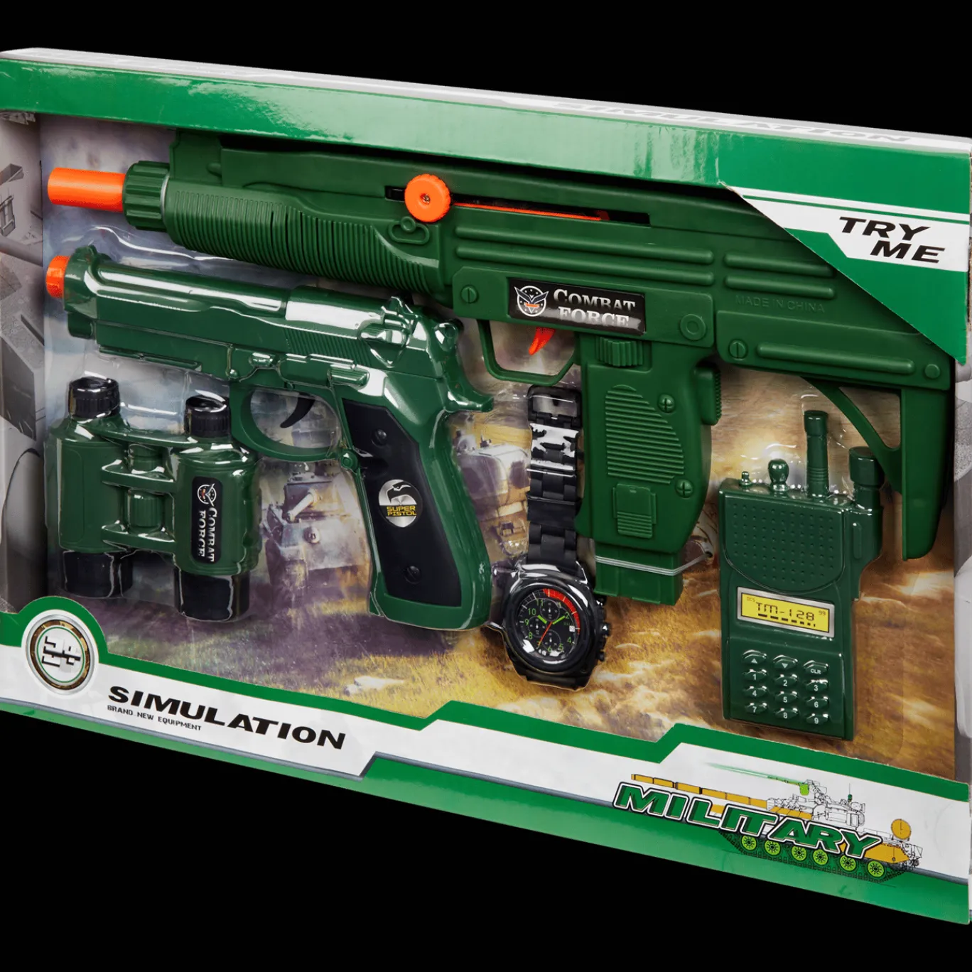 Geef orders als een echte commandant of sla de grootste boeven in de boeien met deze gave speelgoedset. Door de verschillende accessoires en het geweer met echt geluid zit jij helemaal in je rol. Ga samen met je vrienden op een missie.