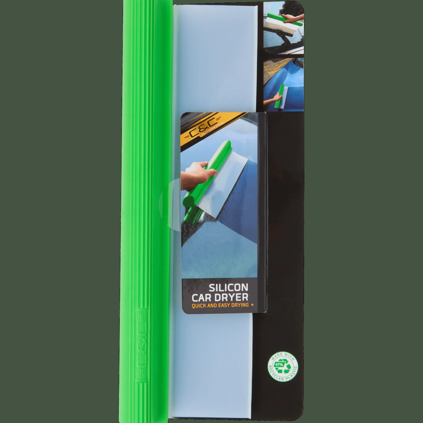 Regenbui gepakt of versgewassen auto? Je trekt je auto makkelijk, snel en streeploos droog met onze flexibele C&C autowisser. De siliconen trekker heeft een comfortabel handvat en droogt zowel ramen als lak veilig en zonder strepen.