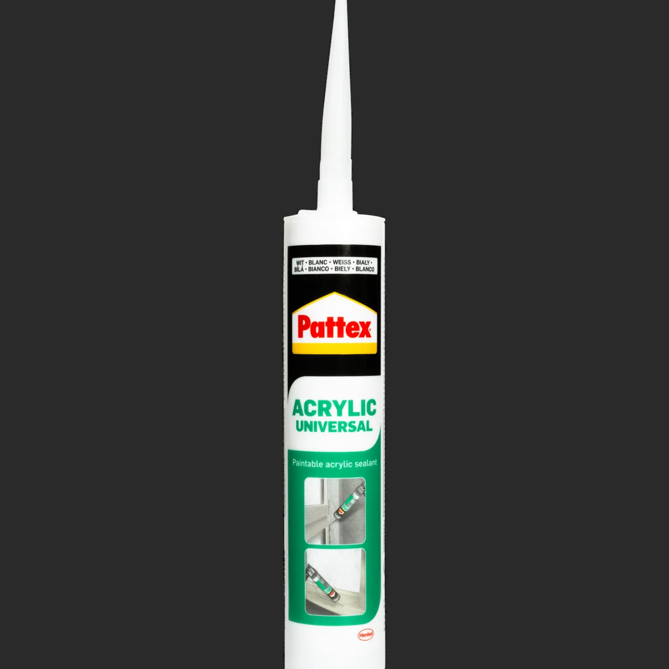 Universele acrylaatkit van Pattex, voor gebruik binnen- of buitenshuis.