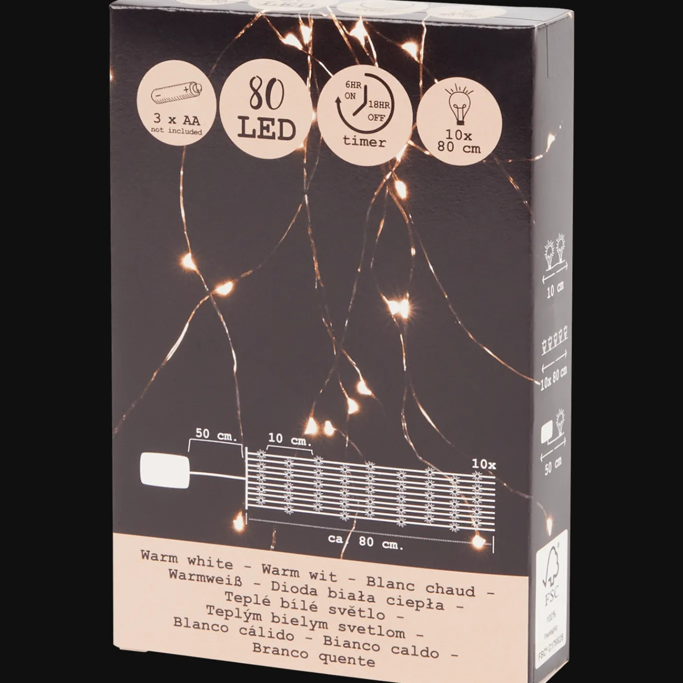 Feestelijke draadbundel waarbij 10 lichtsnoertjes als een magisch verlichte waterval enorm veel sfeer geven. Je hebt alleen nog batterijen nodig.