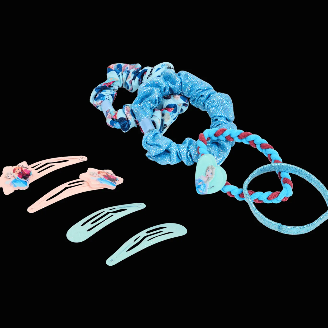 Een vrolijke set met 8 verschillende haaraccessoires, met haarspeldjes en elastiekjes met bekende figuren. Perfect om elk kapsel op te fleuren!