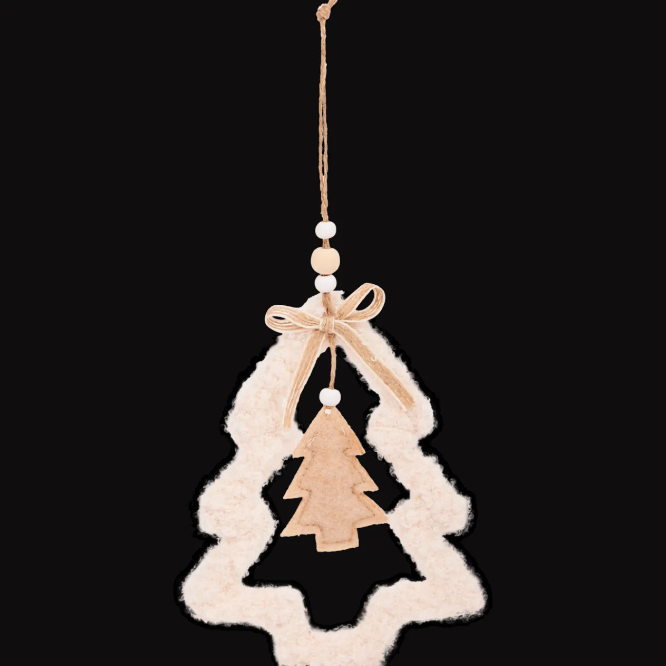 Mag de kerstversiering van jou wel ietsje minder heftig? Deze stijlvolle kersthanger komt in neutrale beigetinten en is gemaakt van mooie materialen zoals teddy-stof, hennep en vilt.