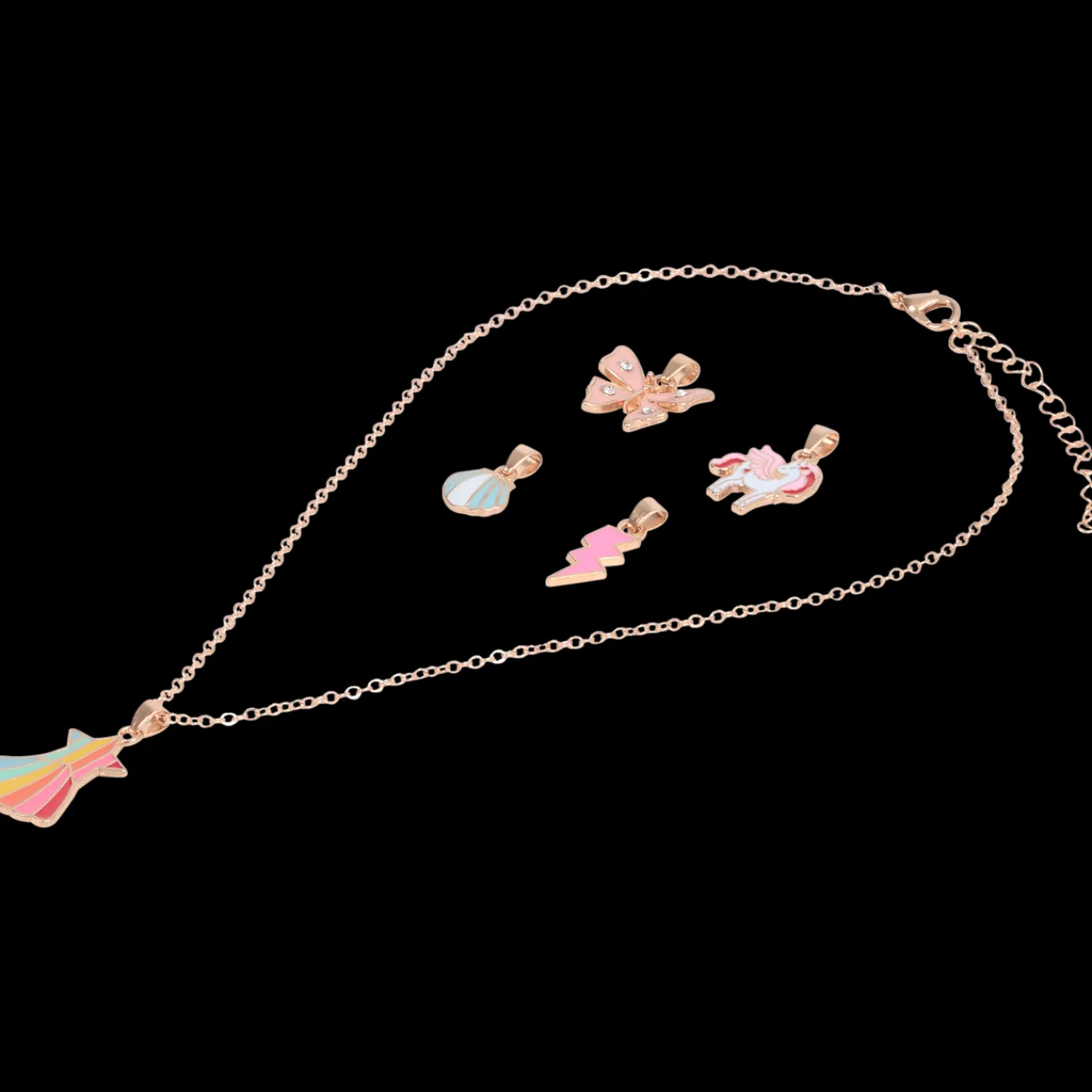 Deze vrolijke ketting met schattige bedeltjes biedt eindeloze combinatiemogelijkheden! Wissel elke keer van bedeltje of draag er meerdere tegelijk voor een unieke look.