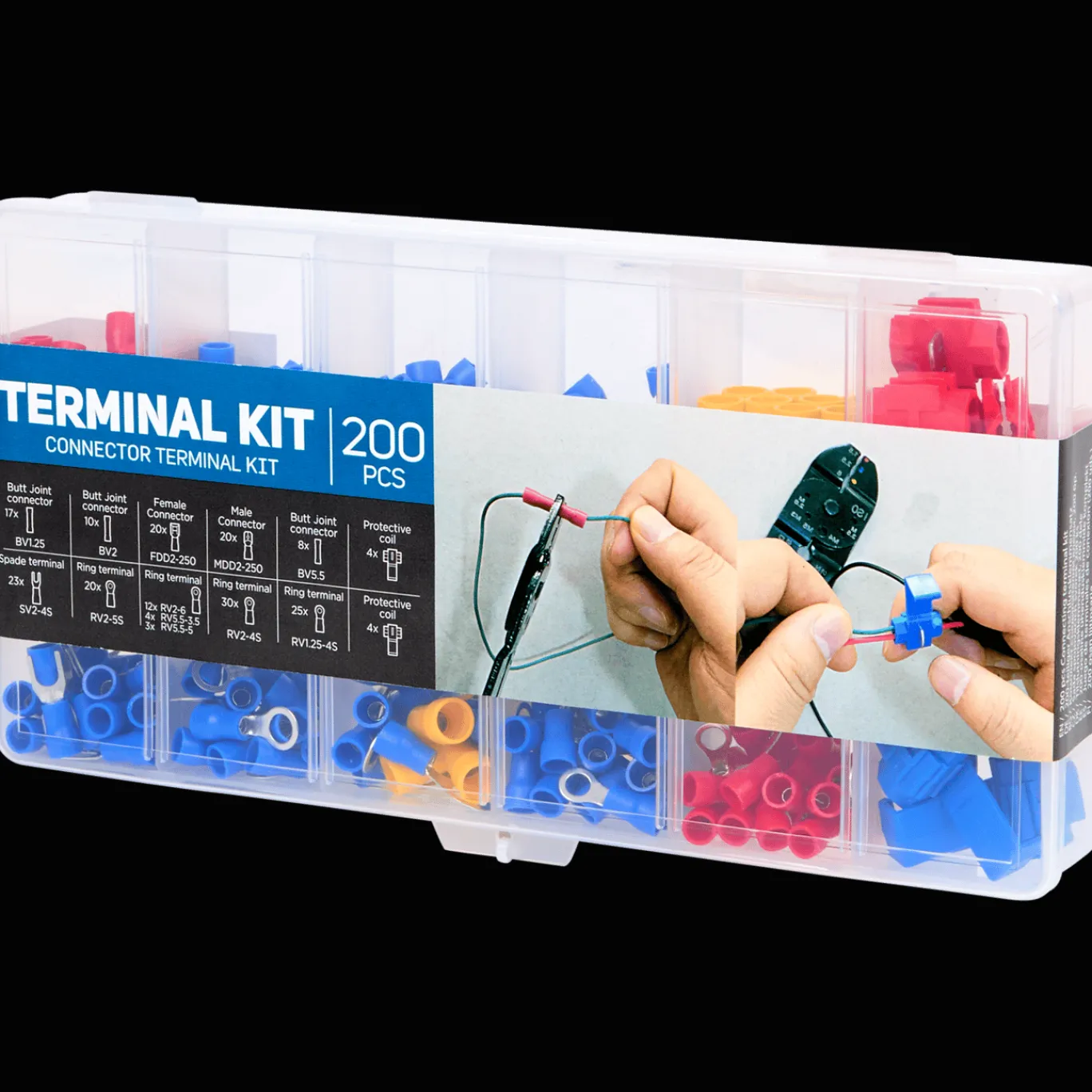 Deze handige bewaarkoffer is gevuld met allerlei elektrische onderdelen. Ideaal voor de doorgewinterde doe-het-zelver.