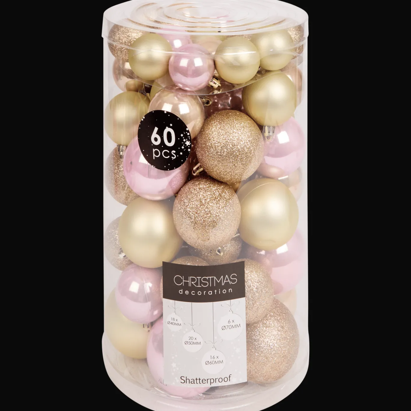 Breng je huis helemaal in kerstsferen met deze gekleurde kerstballen. Er zitten er 60 in een verpakking en ze hebben verschillende maten. Zo is je kerstboom ook dit jaar weer hartstikke mooi versierd.