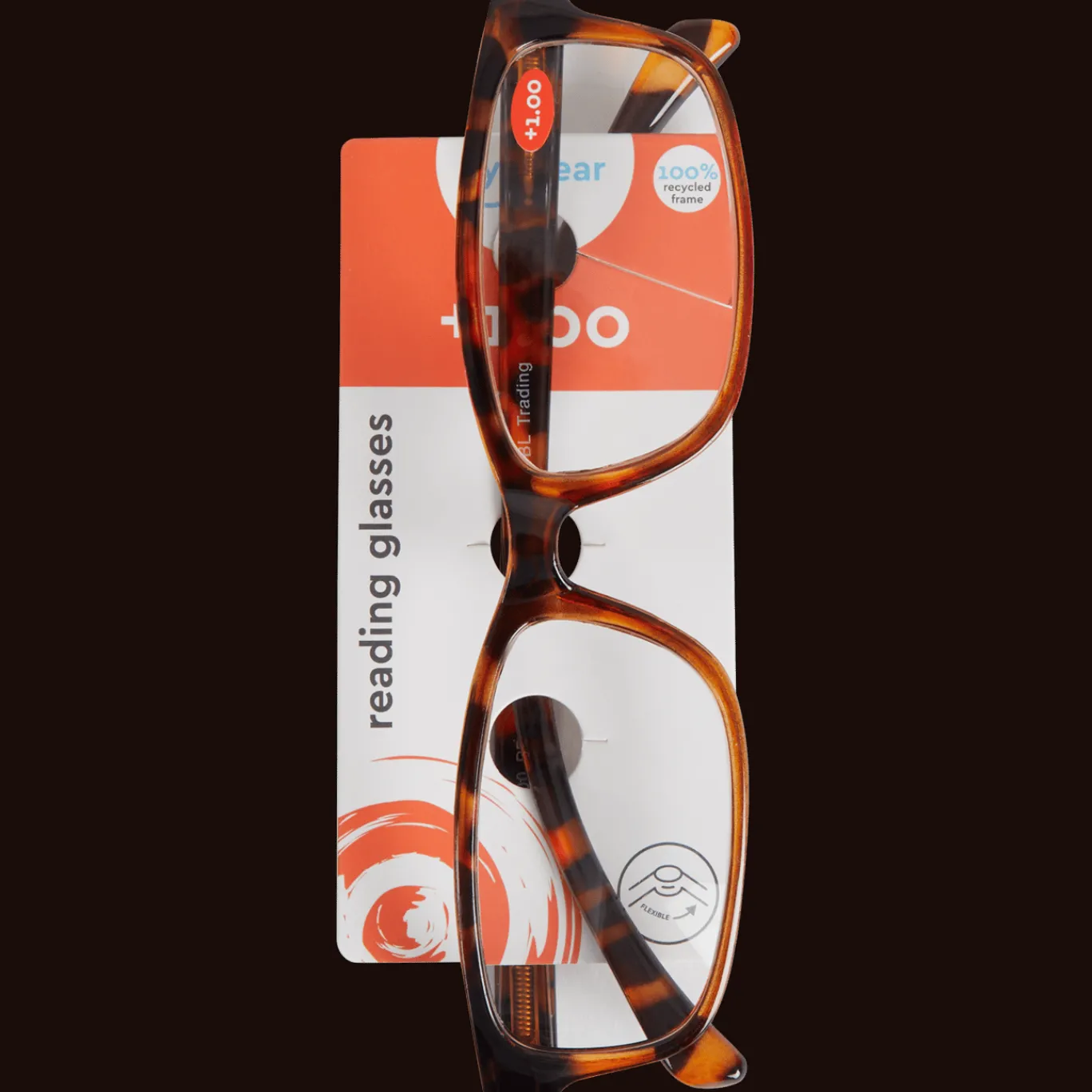 Kant-en-klare leesbril verkrijgbaar in verschillende kleuren, met een sterkte van +1.