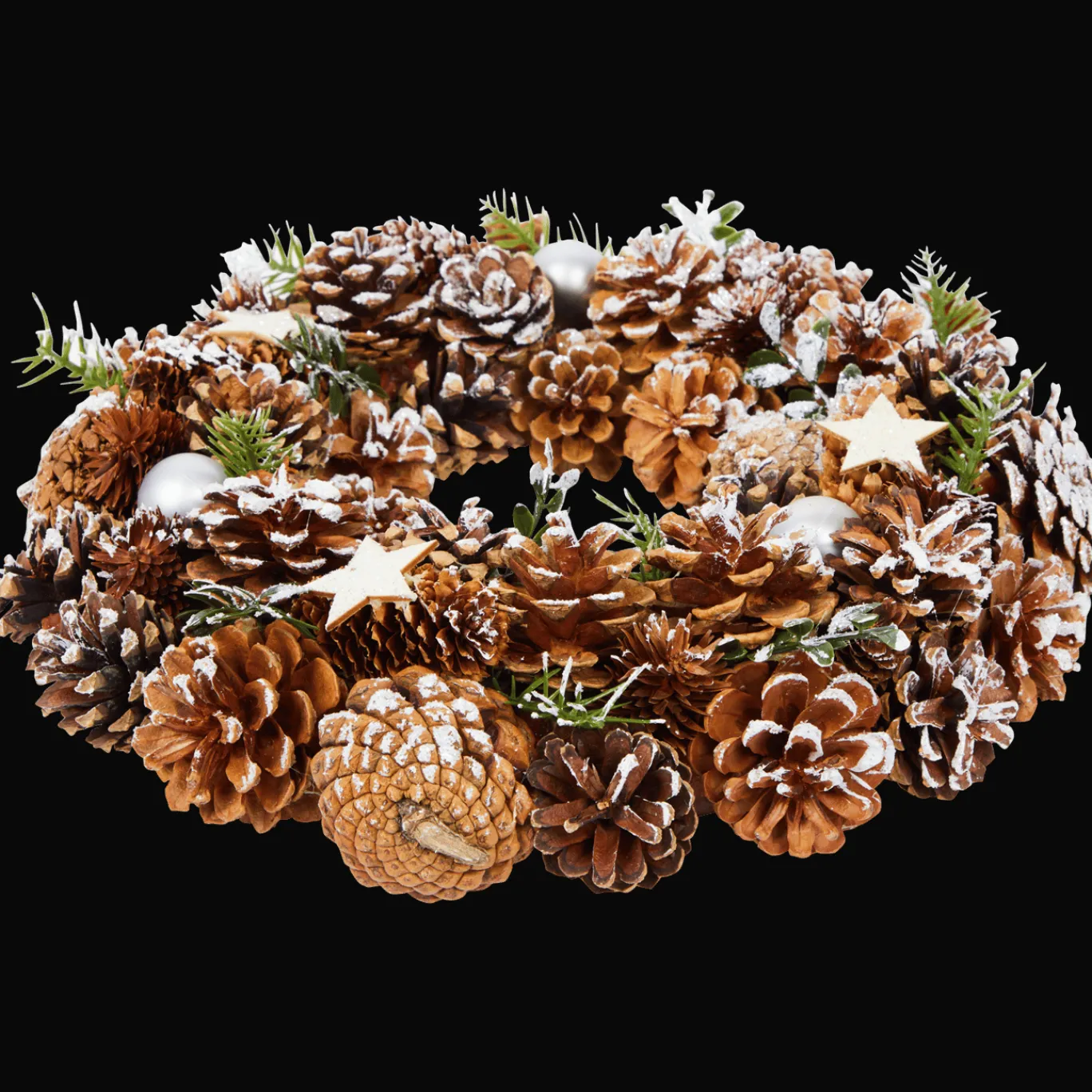 De feestdagen zijn niet compleet zonder sfeervolle krans aan de (voor)deur. Dit exemplaar met dennennaalden en dennenappels lijkt zelfgemaakt, maar hang je zo direct uit de verpakking op voor instant sfeer.
