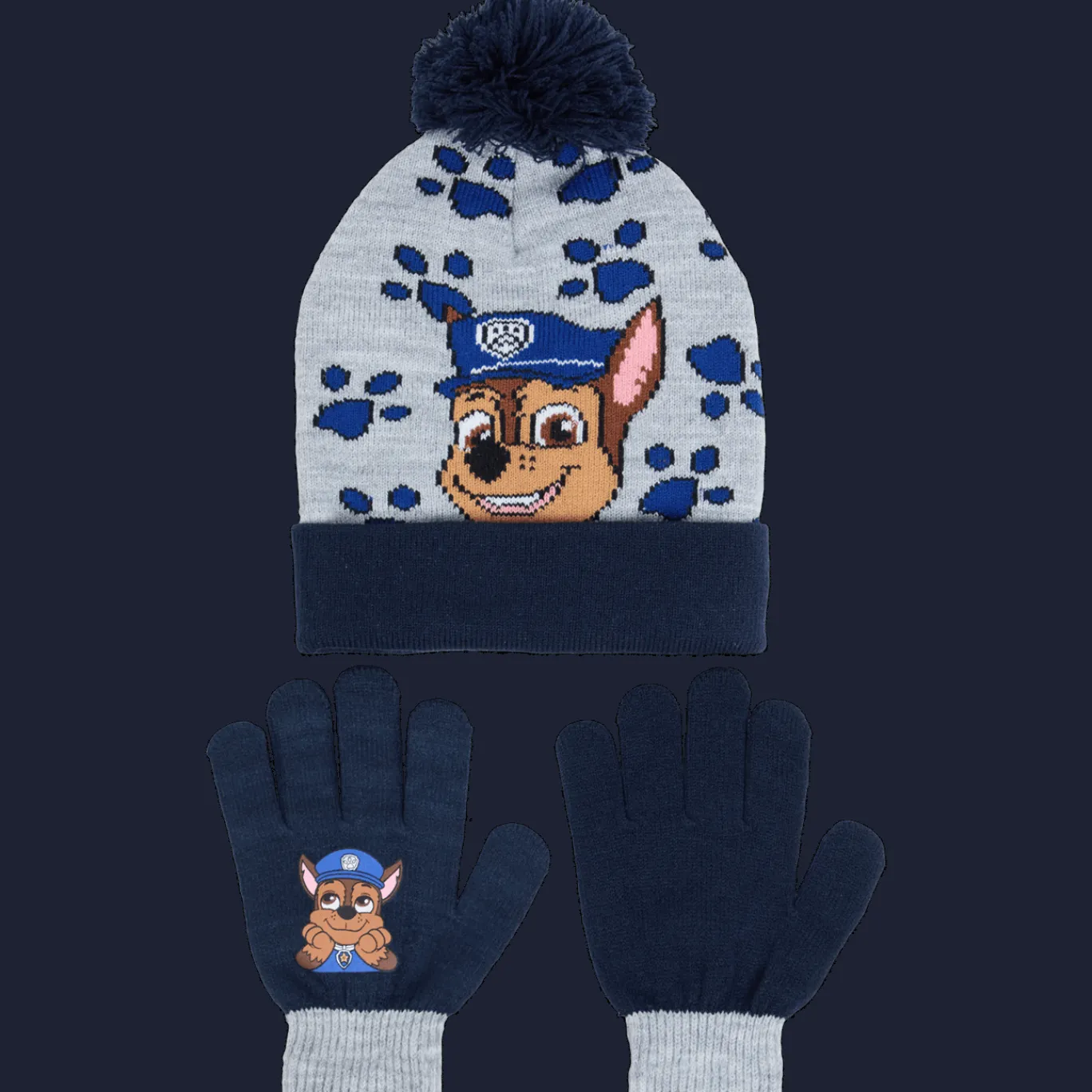 Warme set van een muts en handschoenen voor de winter. Voorzien van kleurrijke prints met bekende tv-figuren.