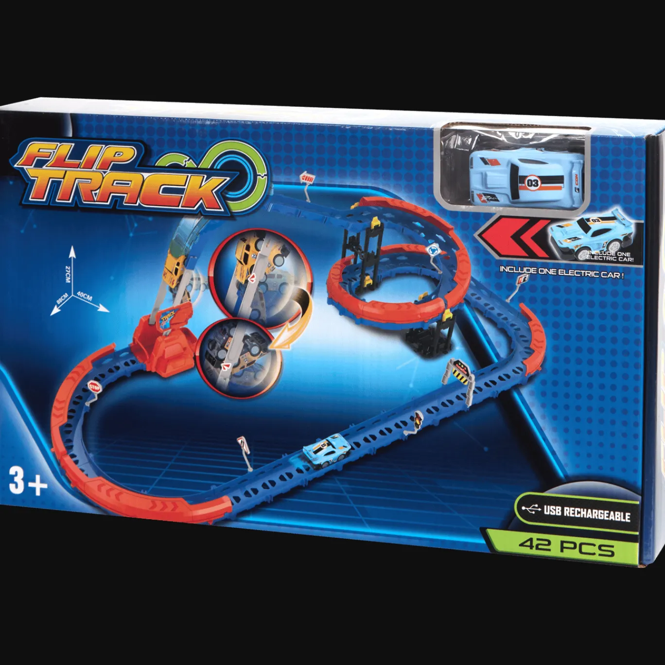 Ready, set, go! Is jouw kleintje helemaal gek op auto’s? Deze stoere racebaan is goed voor urenlang speelplezier. De gekleurde baan zit vol spannende bochten en je kunt de raceauto heel makkelijk opladen met een USB-kabel.