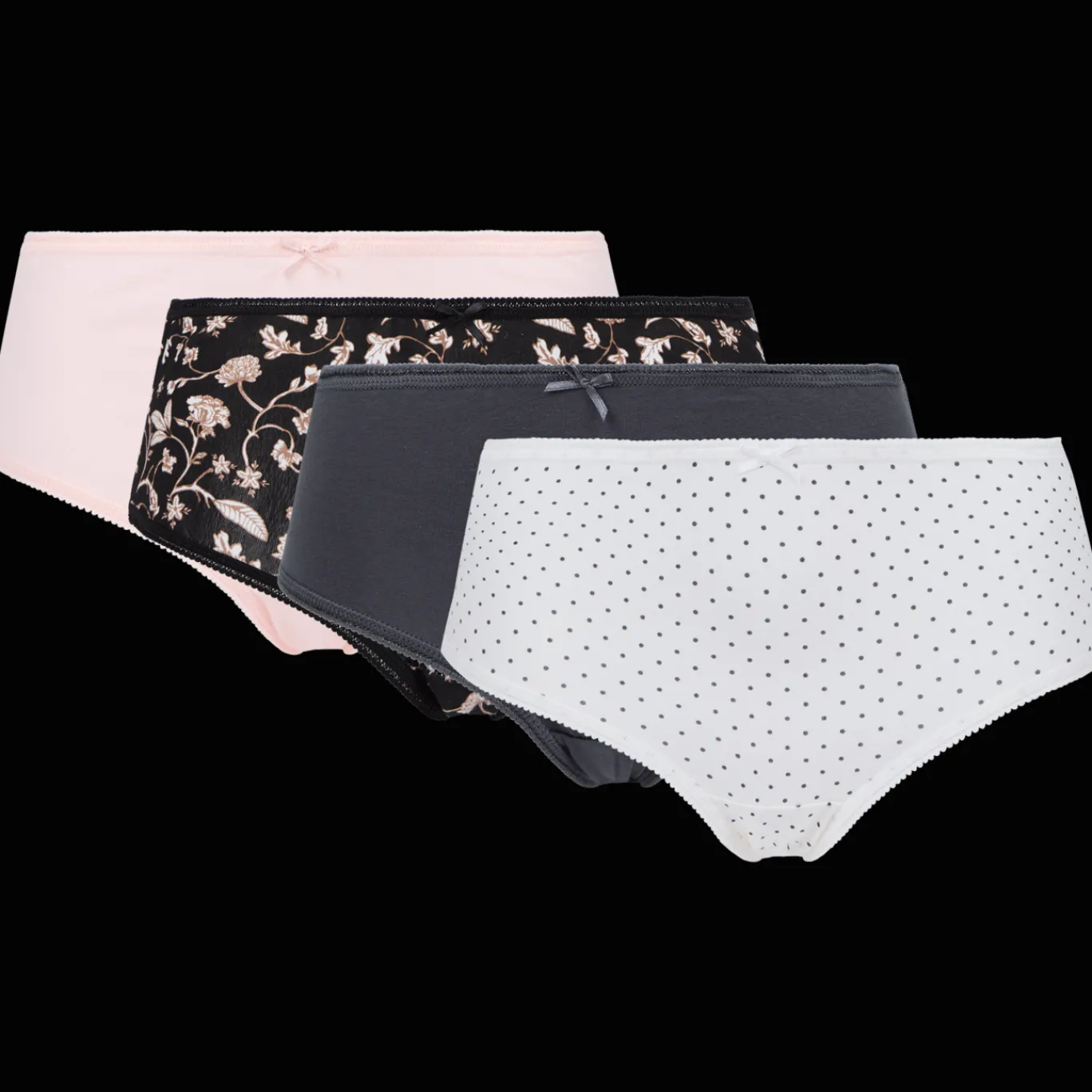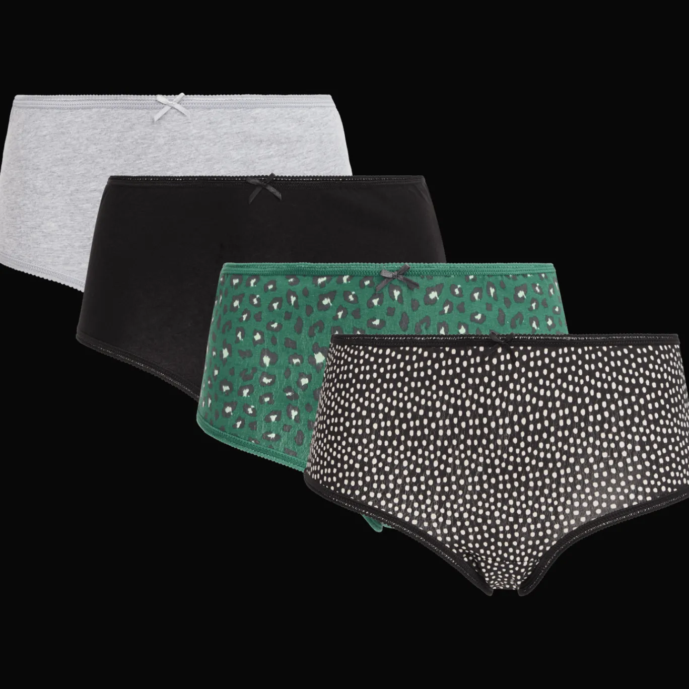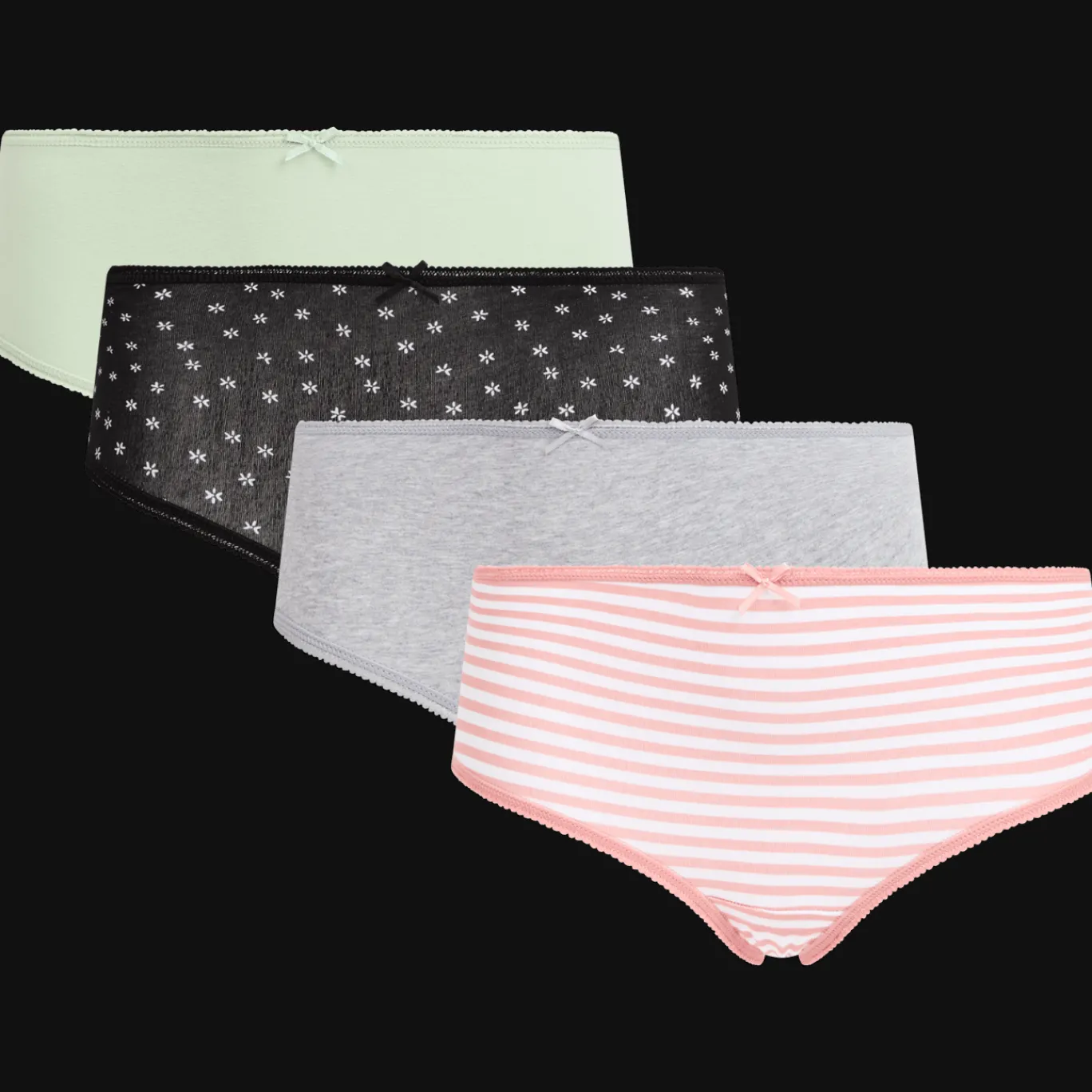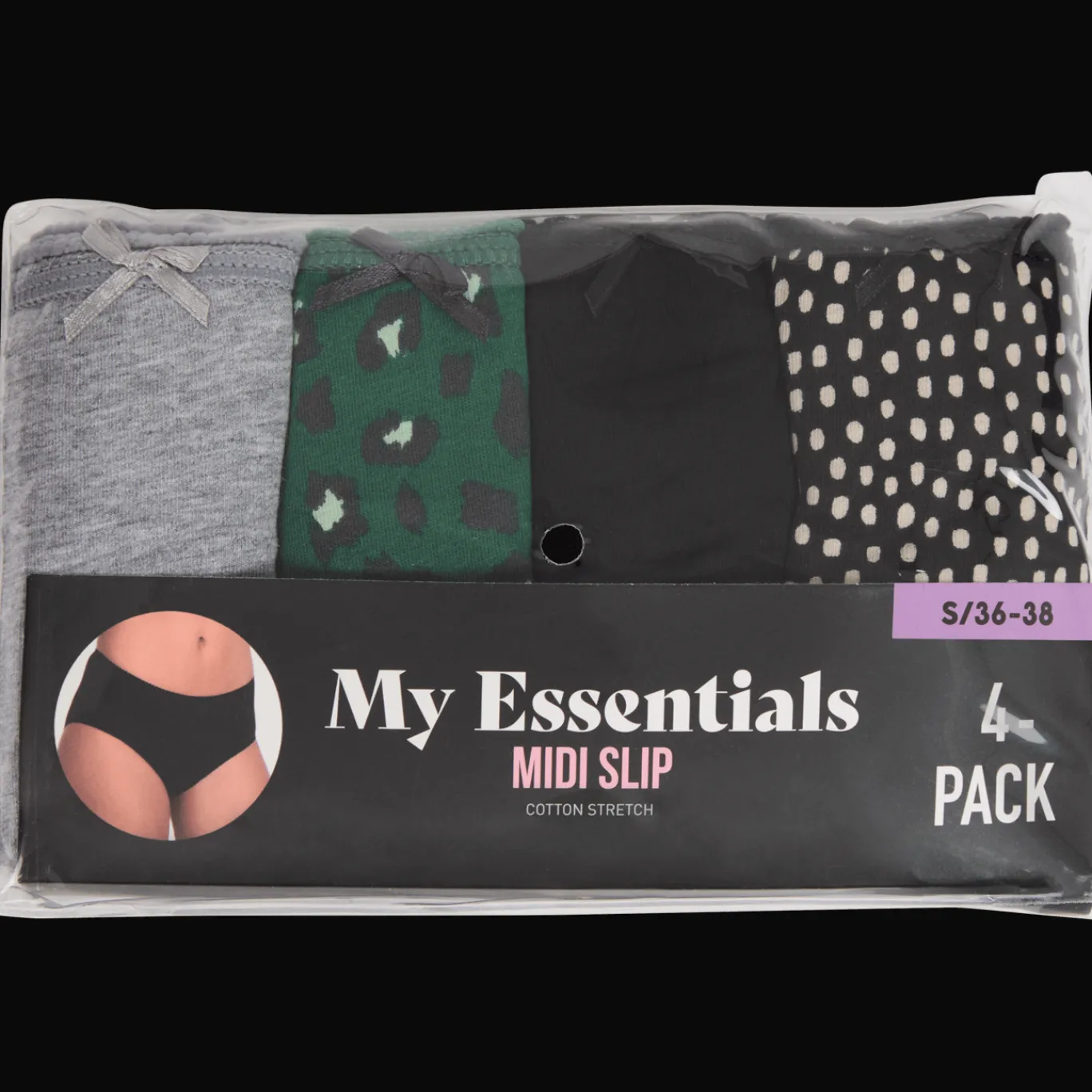 Set met 4 damesslips in effen kleuren en diverse dessins. Ze zien er niet alleen leuk uit, maar zitten ook heerlijk.