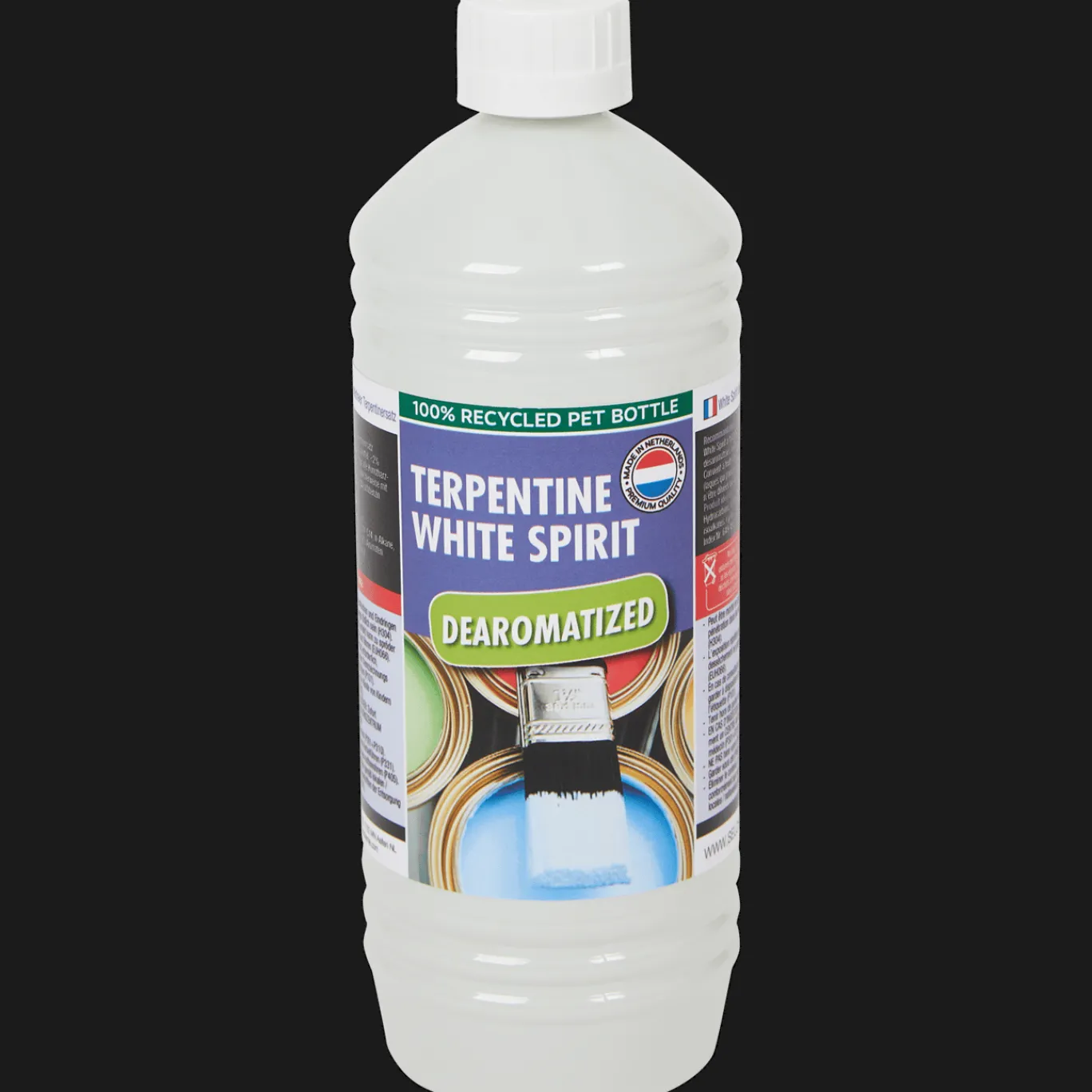 Aromaatvrije terpentine, te gebruiken als verdunner van verf of voor het verwijderen van verfresten en het schoonmaken van kwasten.