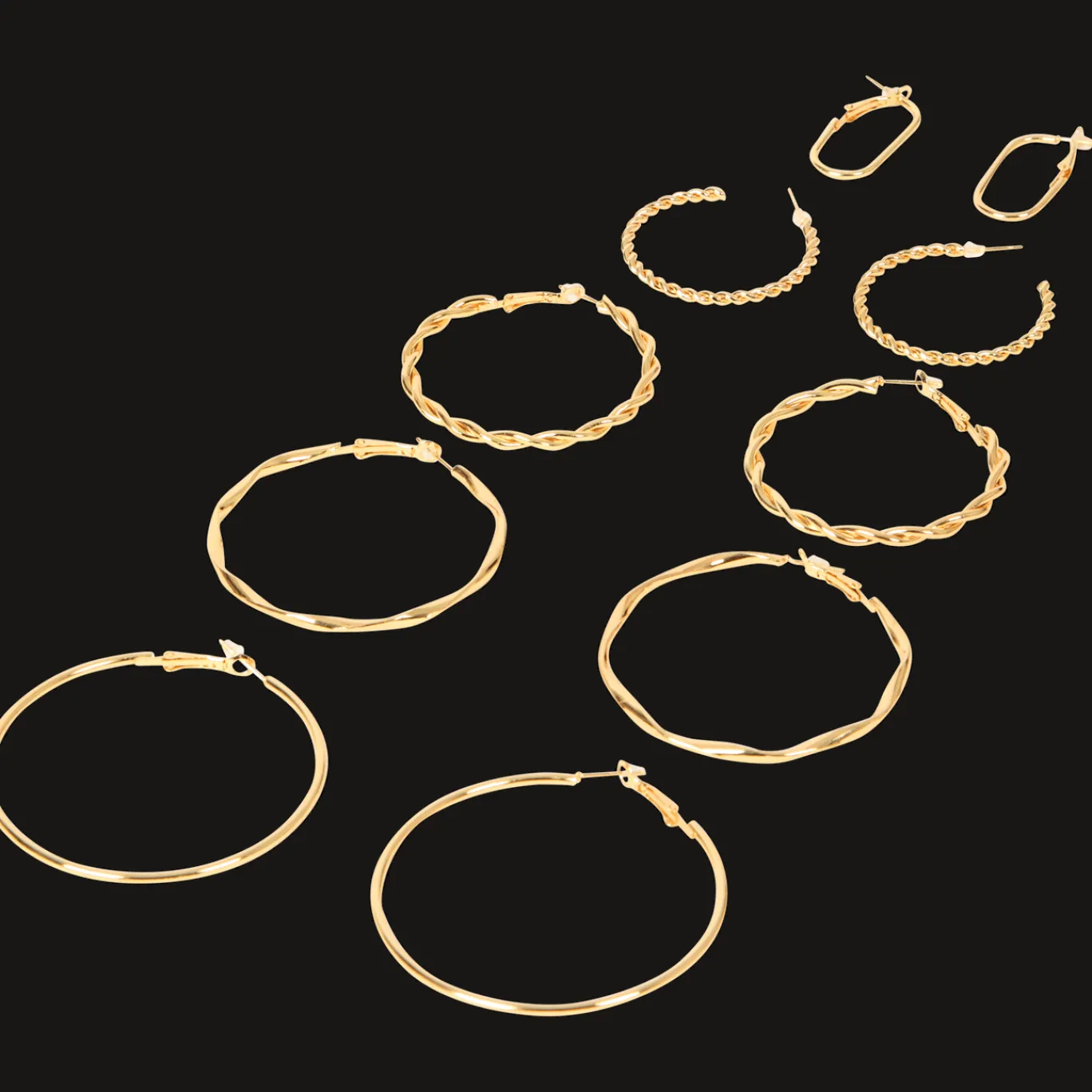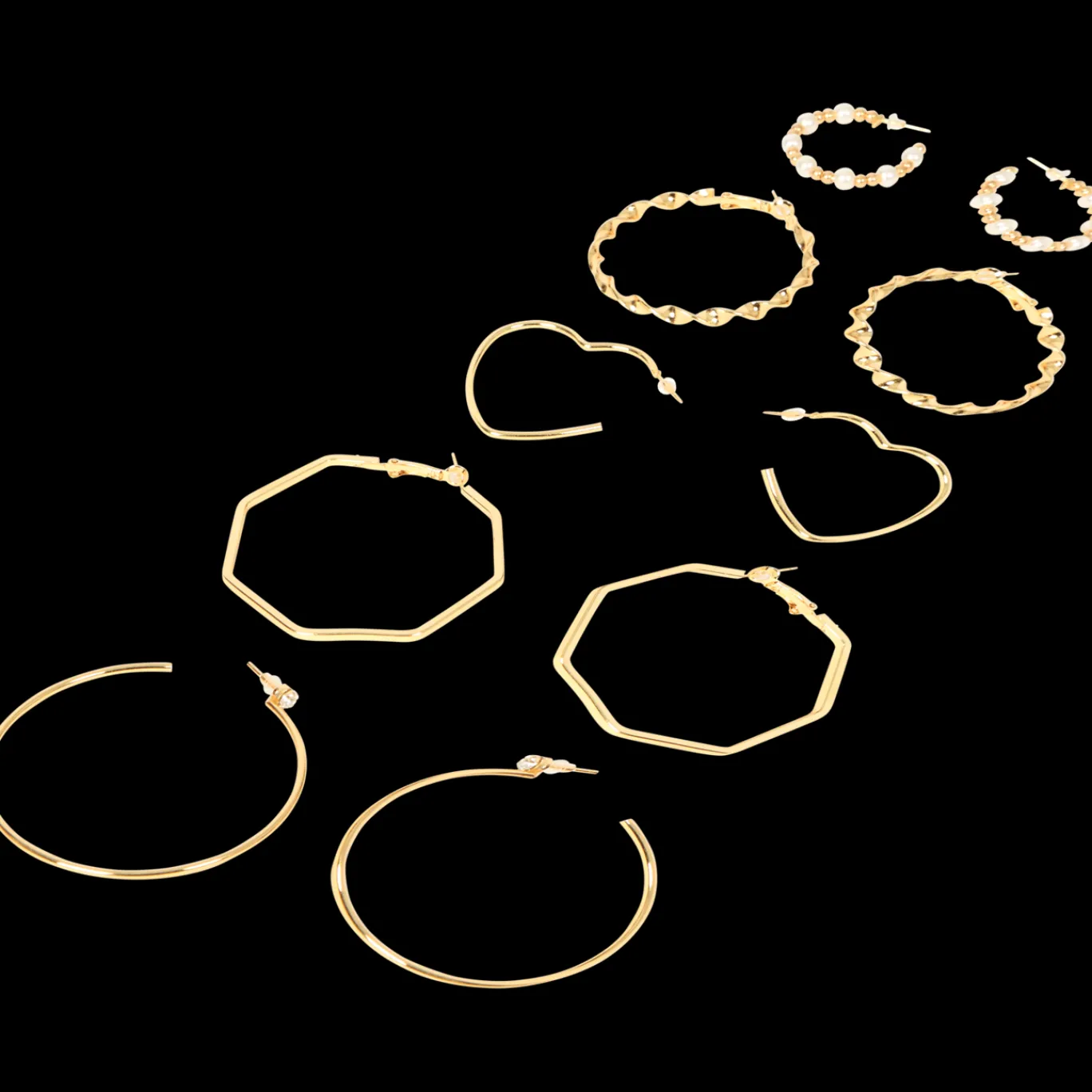 Met deze set van diverse oorringen maak je verschillende combinaties en voeg je eenvoudig de juiste finishing touch aan je outfit toe.