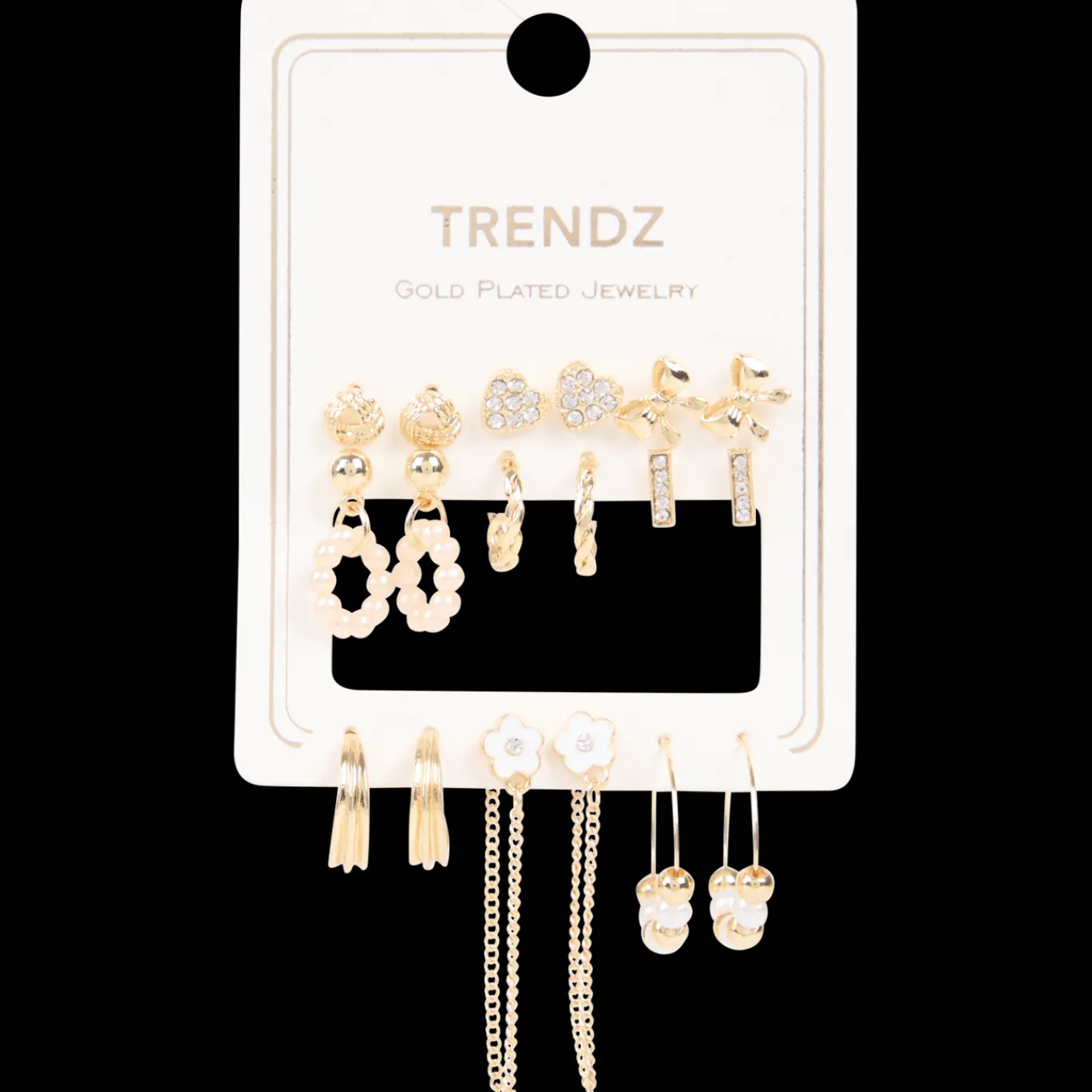 Met deze set vol hippe oorbellen, draag jij elke dag een ander paar. Of wanneer jij meerdere oorgaatjes hebt, maak je er een echte earparty van. Mix en match de verschillende soorten met elkaar voor een trendy geheel.