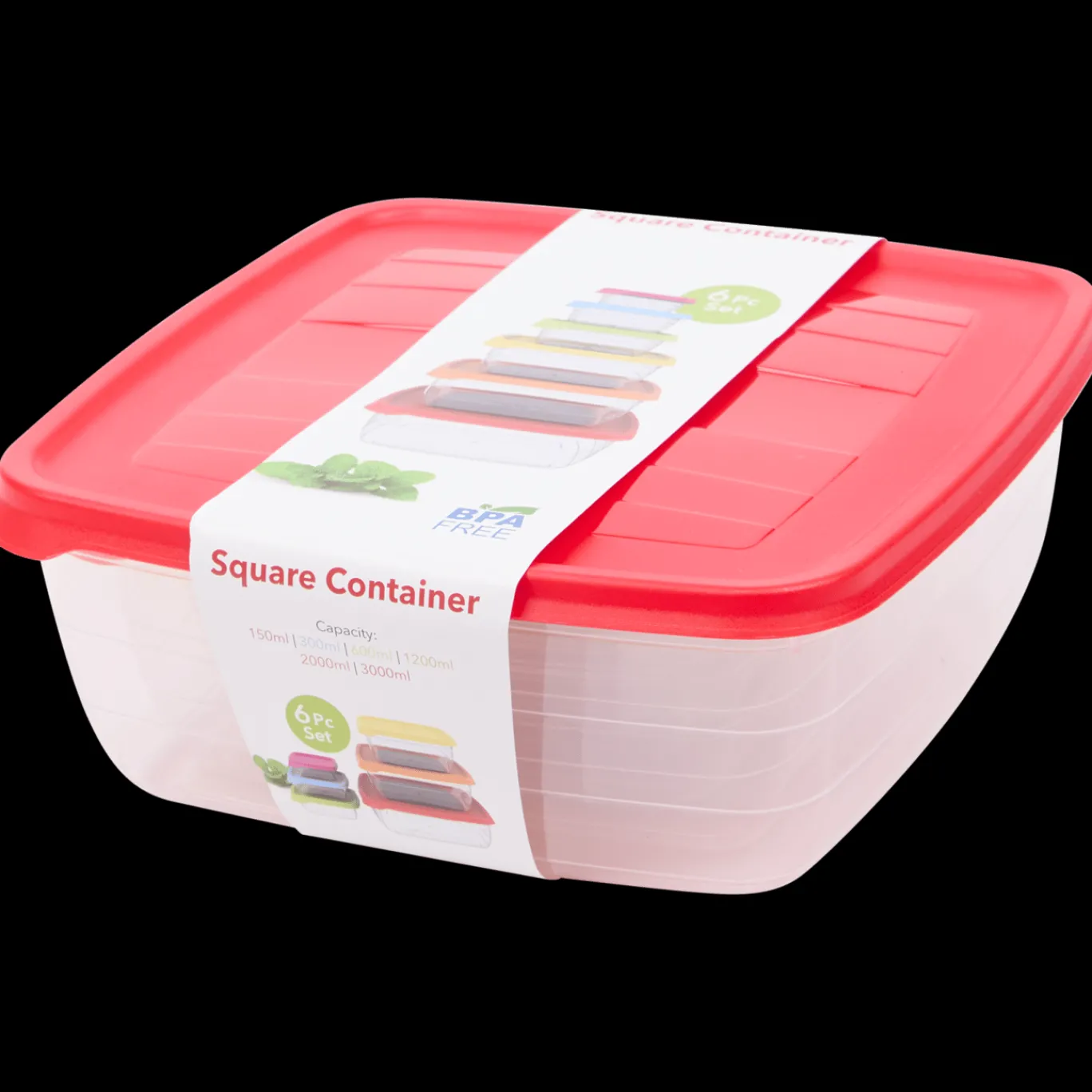 De 6-delige set bestaat uit de volgende onderdelen:1 x doos van 150 ml1 x doos van 300 ml1 x doos van 600 ml1 x doos van 1200 ml1 x doos van 2000 ml1 x doos van 3000 ml