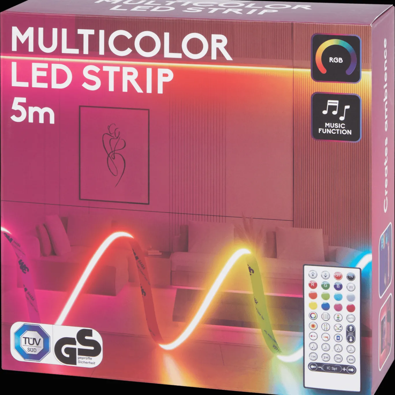 Met 480 leds per meter zorgt deze ledstrip voor een goede lichtverdeling, en dankzij de meegeleverde clips, schroeven en zelfklevende tape is hij eenvoudig te installeren. Dankzij de muziekfunctie kun je het licht laten meegaan met je muziek, zo wordt jouw feestje een echte knalfuif!