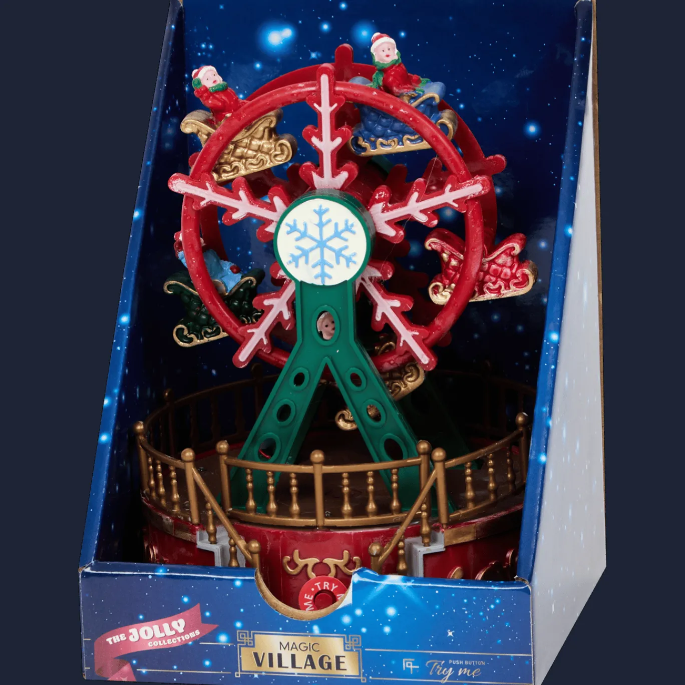 Draait er straks in jouw kerstdorp een draaimolen, helemaal in kerstsfeer? Lachende gezichtjes die rondjes draaien op muziek! En alsof dat niet genoeg is, staat er ook een reuzenrad met knipperende lichtjes en muziek. Het is gewoon een winterwonderland in de vensterbank of op tafel.
