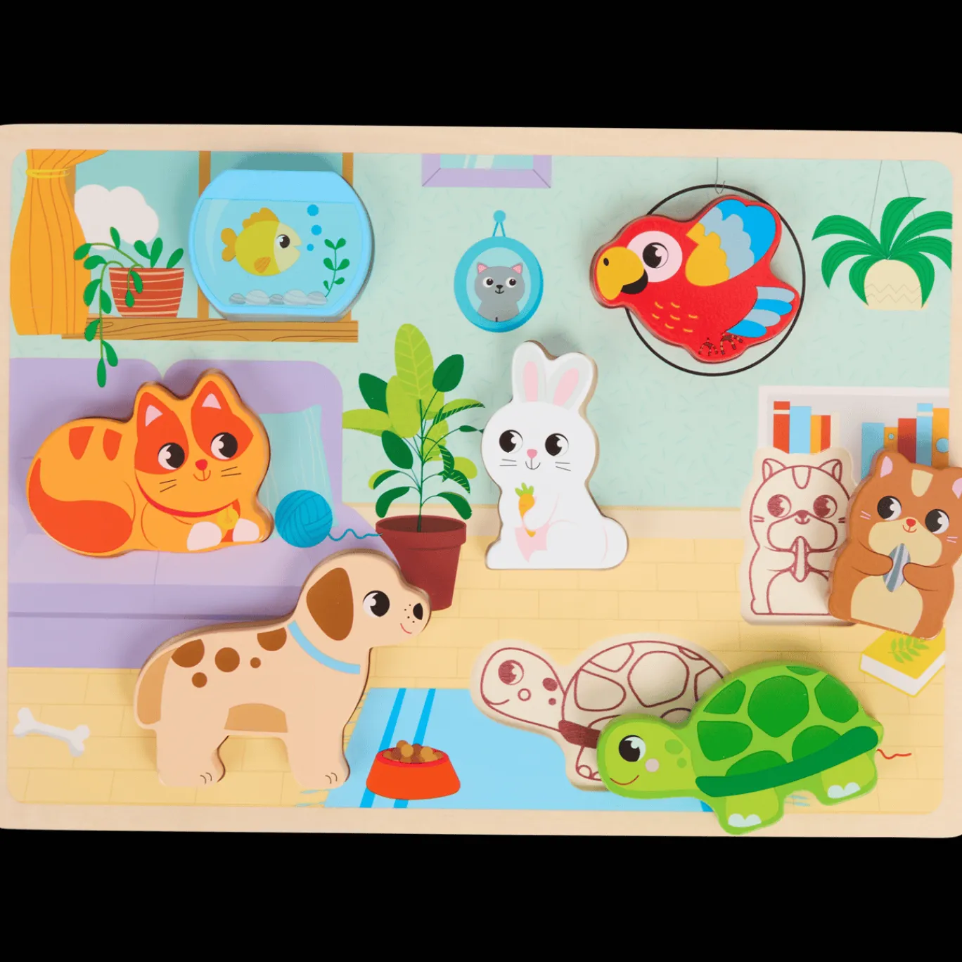 Deze kleurrijke houten puzzel in verschillende thema’s leert de allerkleinsten kennis te maken met kleuren en vormen.