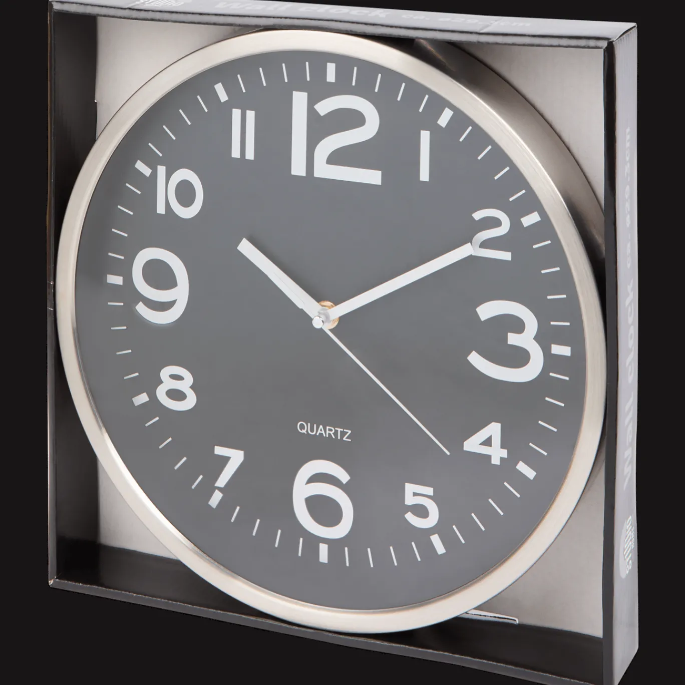 Deze klassieke wandklok met roestvrijstalen rand past in elke ruimte.